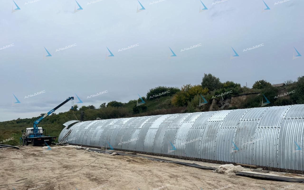 Арка из листов гофрированной трубы ЛМГ представляет собой сборную конструкцию, выполняемую из отдельных сегментов, соединённых болтовыми стыками.