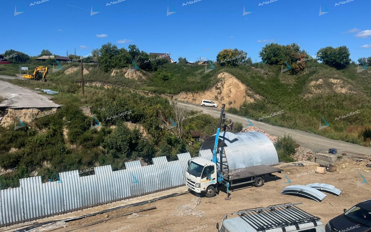 За счет профилированной поверхности металлических листов арка обладает высокой несущей способностью при относительно небольшой массе материала.