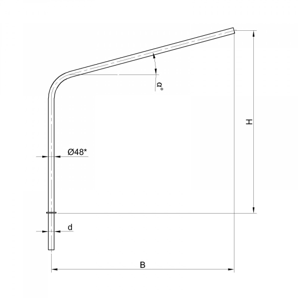 Однорожковые кронштейны К2-1,5-1,5-1-1 предназначен для крепления светильника на трубчатой опоре освещения. Завод опор освещения «Альдекс» изготавливает однорожковые консольные кронштейны из стального проката. Собственное производство позволяет выполнять изделия надлежащего качества и в кратчайшие сроки. Конструкция однорожковых кронштейнов К2-1,5-1,5-1-1. Конструкция консольных однорожковых кронштейнов К2-1,5-1,5-1-1 представляет собой гнутую металлическую трубу заданных размеров.