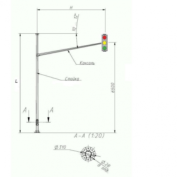 Опора ОГСГ-6,15-6,1 — это гранёная силовая светофорная конструкция. Используется для установки светофоров, возможно дополнительно установить дорожные знаки, указатели, видеофиксаторы.